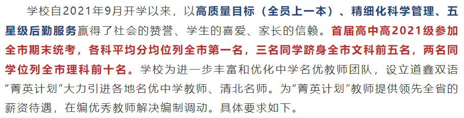 本次教师考聘在道鑫教育集团人力资源部指导下全程公开、公平、公正开展,接受道鑫教育集团和学校纪检监督。