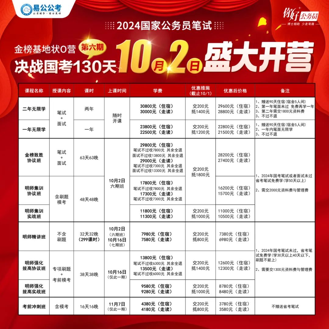 笔试课程 10月2日开课