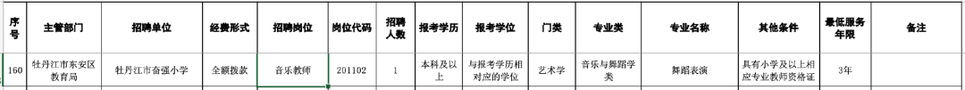 招聘单位:牡丹江市奋强小学