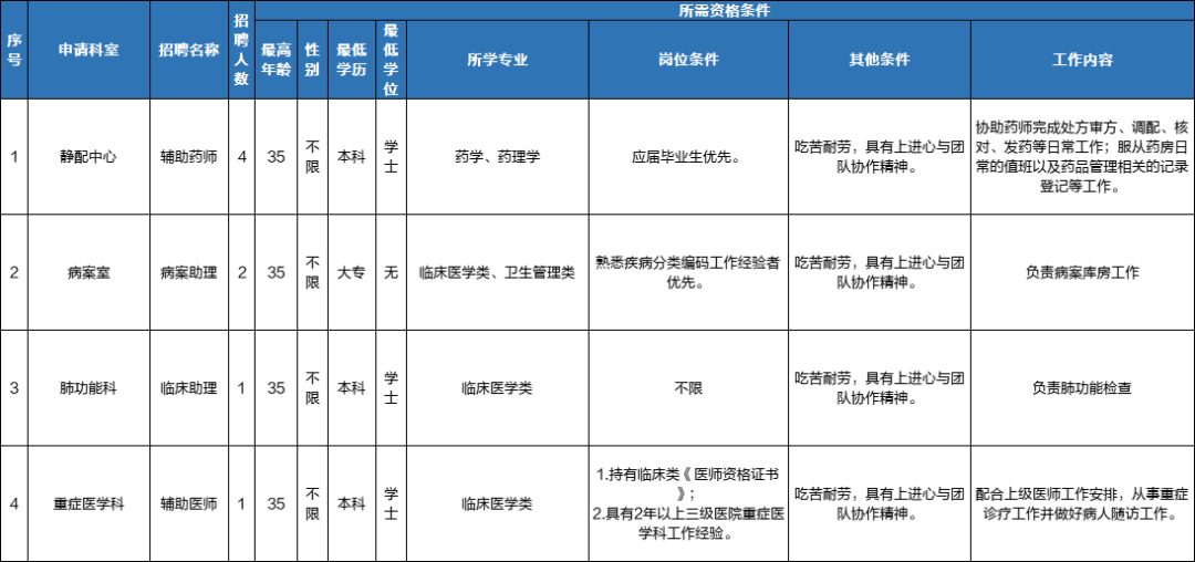 为进一步满足医院各科室的工作需求,提升服务质量,我院向社会公开招聘辅助岗位工作人员。现将招聘简章公布如下: