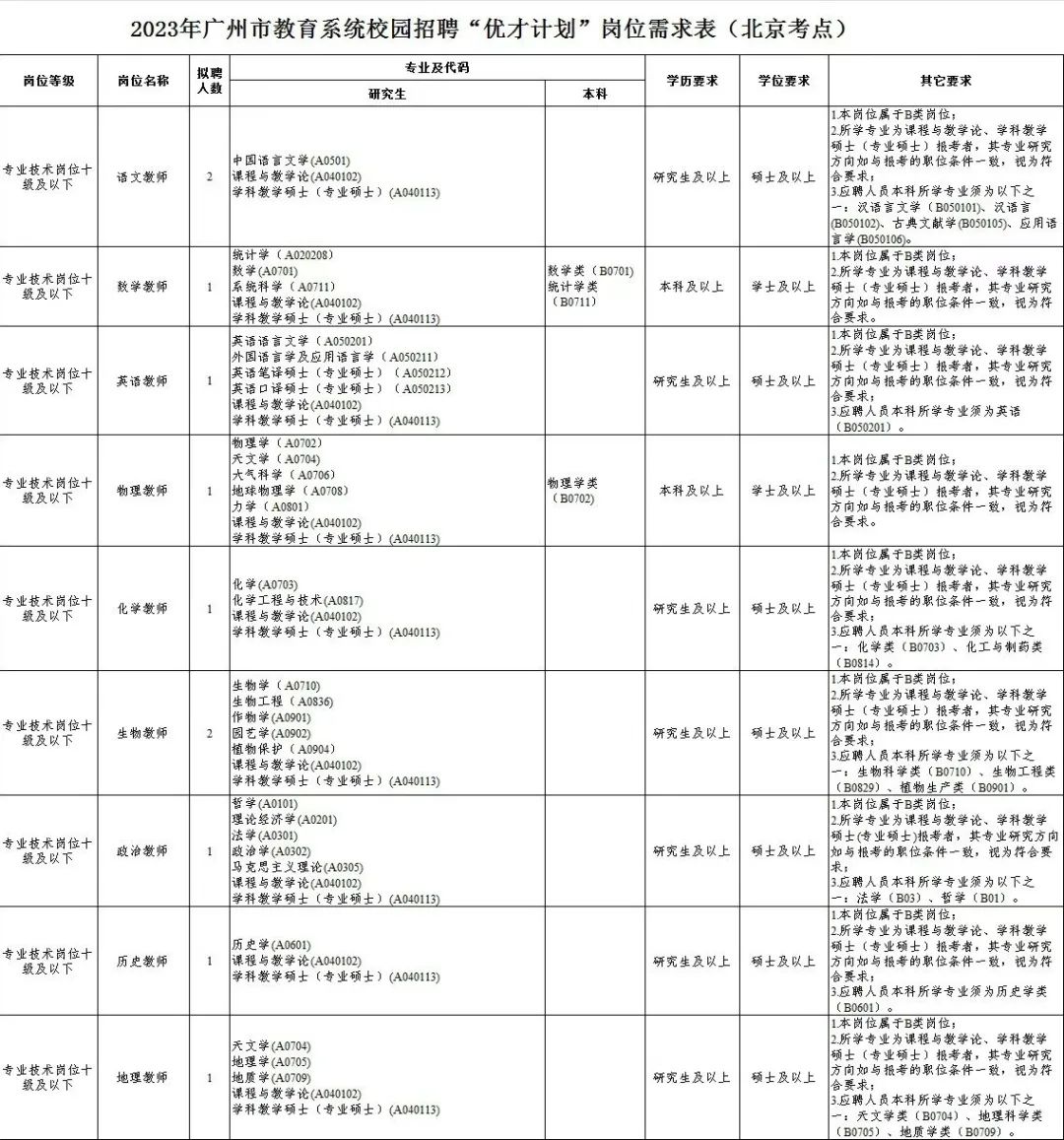 | 广州市越秀区育才实验学校 | 1 | 2023年9月28日前 | 点击详情 |
