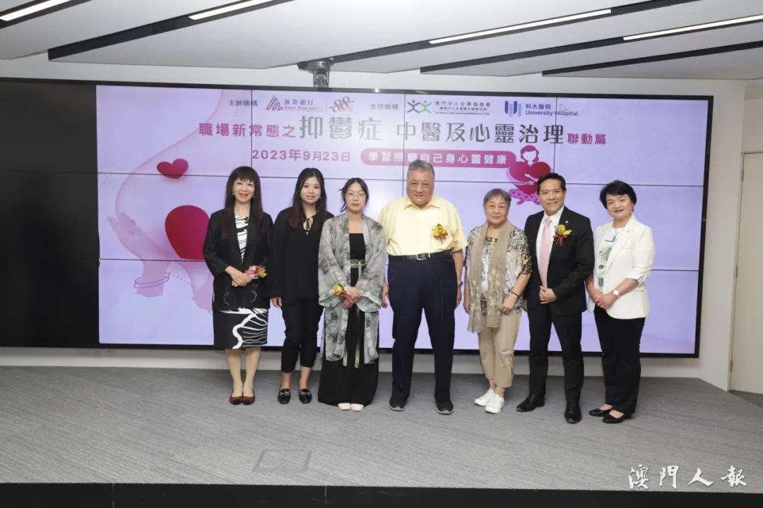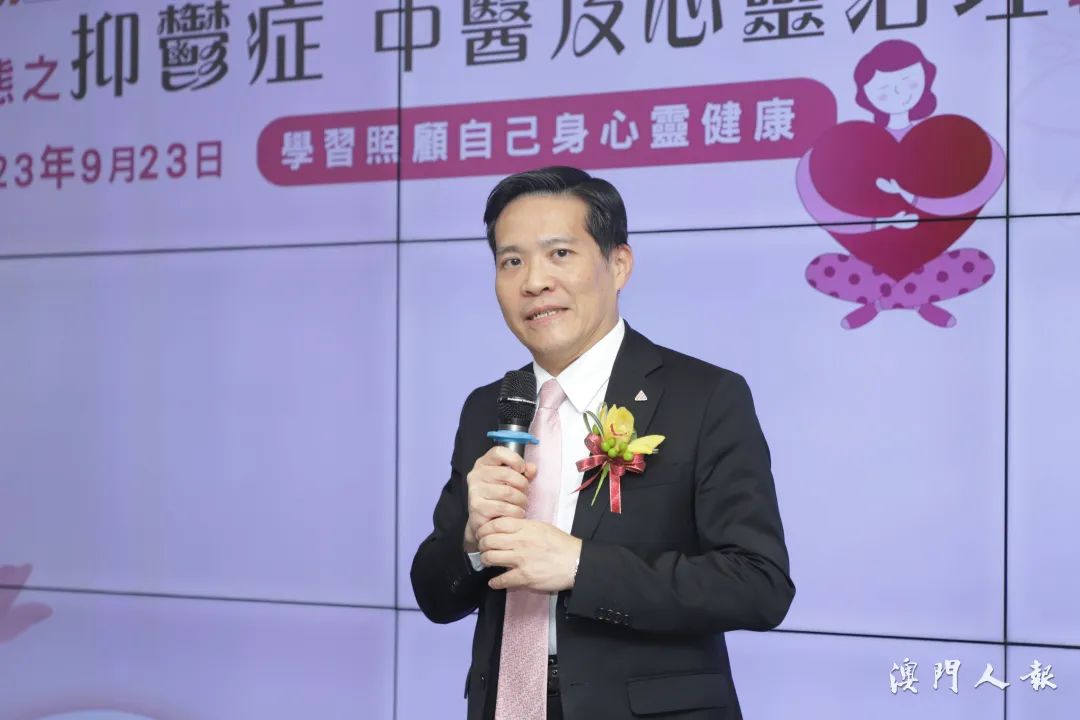 講座講者、科大醫院中醫生韋佩詩表示,據2021年澳門大學和澳門鏡湖護理學院公布的《新冠疫情後期澳門市民精神健康狀況調查》的研究指出,千名受訪者中,有70.1%認為疫情對其生活有「中至重度」的影響,在精神健康方面,有11.5%和6.3%受訪者分別感受到明顯抑鬱及焦慮情緒困擾。在疫情後期,有26.4%受訪者反映感到中重度疲憊感,甚至有6.4%受訪者曾經歷中度至重度失眠。她說,抑鬱症可發生在任何人身上,高發年齡為15至33歲,女性患病率高於男性。心情低落、思維延緩、意志活動減退、認知功能損害、睡眠障礙、乏力、食慾減退、體重下降等症狀可成為抑鬱的診斷指標。韋佩詩續稱,中醫會依循求診者肝氣鬱結、心肝鬱熱、痰氣交結、肺虛失宣等症狀施以針對性治療,目前中醫治療抑鬱症主要採用中醫治療、針灸推拿療法、運動療法、心理療法等形式,希望市民多關顧身邊人,若遇抑鬱症症狀宜以樂觀正面及科學心態面對,早日尋求醫生協助。