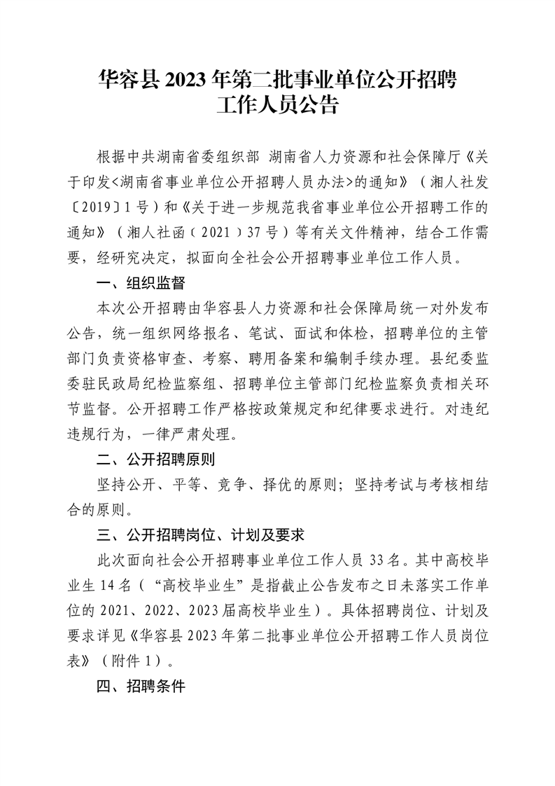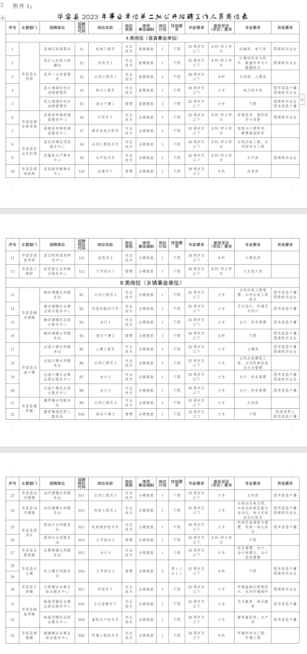 附件1:华容县2023年事业单位第二批公开招聘工作人员岗位表.docx