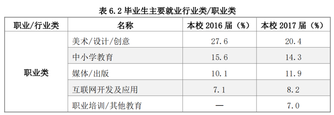 从中国美术学院毕业生就业单位性质占比情况来看,进入高等教育单位就业的人数占比为17.7%左右,中初教育单位占比为7.67%,国有企业单位就业占比7.08%,党政机关就业2.06%,科研设计单位占1.18%,其他事业单位就业占比5.01%,毕业生去向单位中,属于体制内单位就业的占比达到40.7%左右,从这个数据来看,中国美院的毕业生就业质量还是比较不错的。