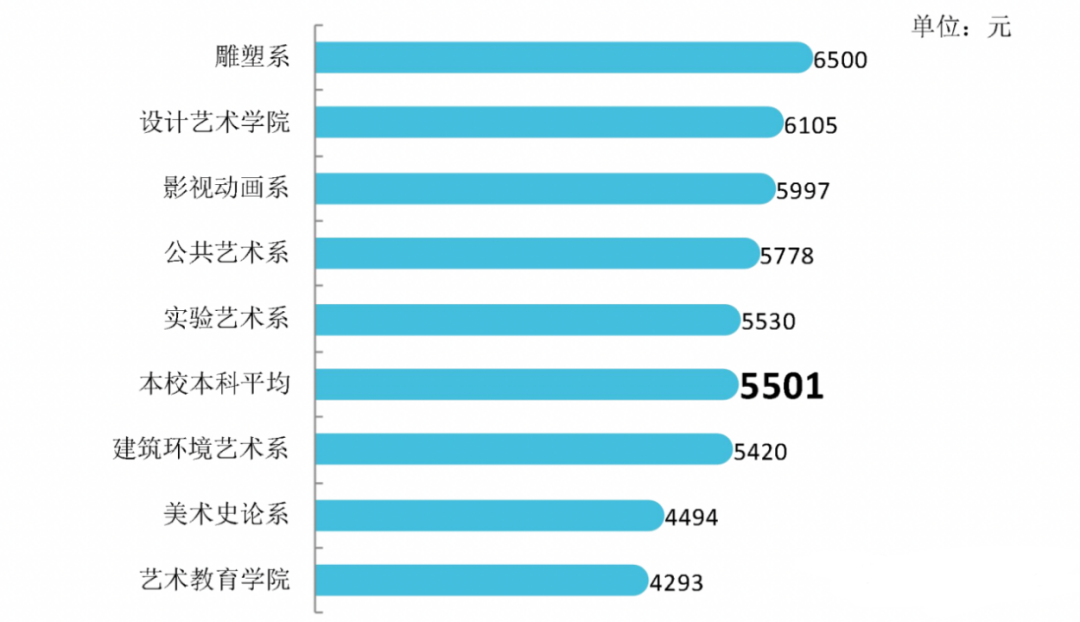 学校公布了毕业生平均月收入薪酬结构。其中6000-8000元之间的毕业生人数占比为24.16%,另外8000-10000之间占20.52%,4000-6000之间占18.96%,而低于4000元薪酬的人数占比也还有11.17%,高于10000元的也还有25.19%。月入最高的专业是跨媒体艺术专业毕业生,达到了1.3万元以上。