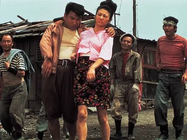 在黑泽明这部出道之作的开头,镜头从天空慢慢下移到一个嘈杂的街头,人力车和马车从镜头前匆匆驶过,随后镜头转向了道路左侧,这时欢快的背景音乐被一群年轻妇女的歌声打断。