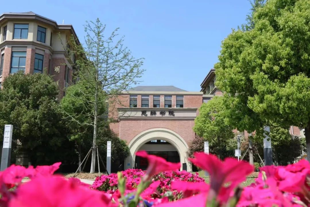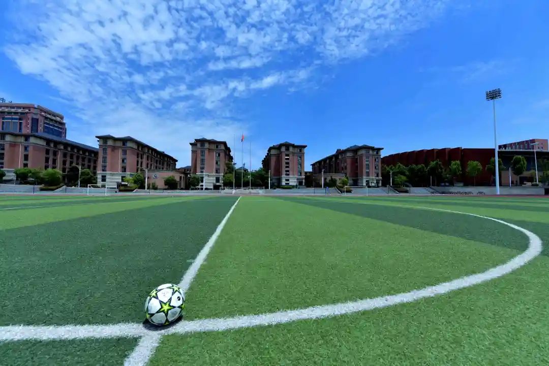 学校用地呈东高西低,北高南低,全部建筑因形就势而建,简约的欧派与淡雅的徽派融合,叠水流觞,绿草如茵。教学区、办公区、生活区、运动区分布以“品味、人性、便捷”为原则原则,既相对独立、又和谐成片,功能完善,充分满足“新课程、新教材、新高考”实施选科走班和学生德智体美劳发展需求。