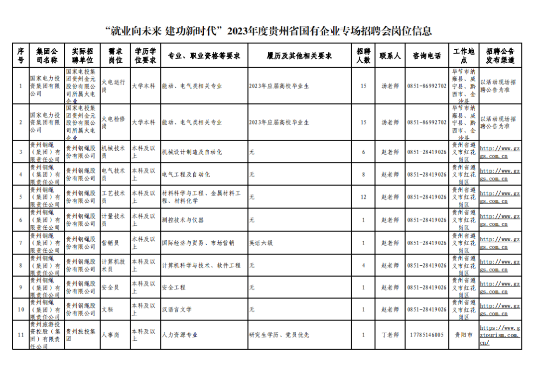 省教育厅、省国资委、省人力资源社会保障厅定于2023年3月15日,联合举办“就业向未来 建功新时代”2023年度贵州省国有企业专场招聘会。现将有关事宜公告如下: