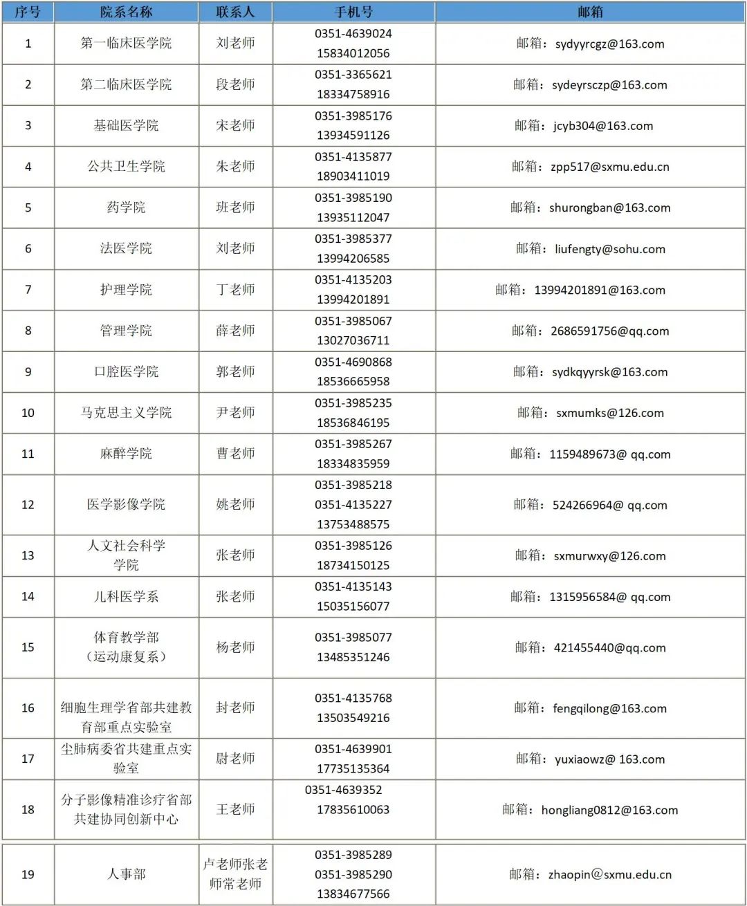 招聘政策和具体事宜可咨询山西医科大学人事处。