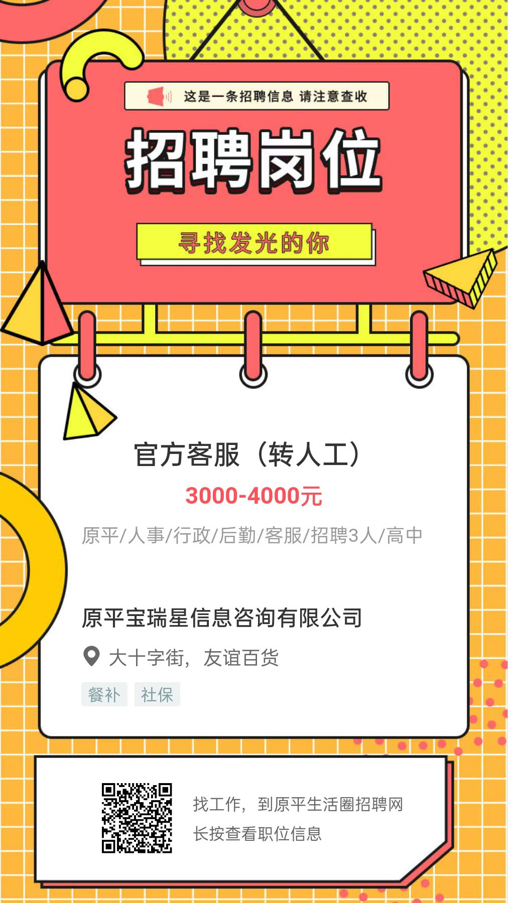 >【最新招聘】原平宝瑞星信息咨询有限公司招聘官方客服(转人工)