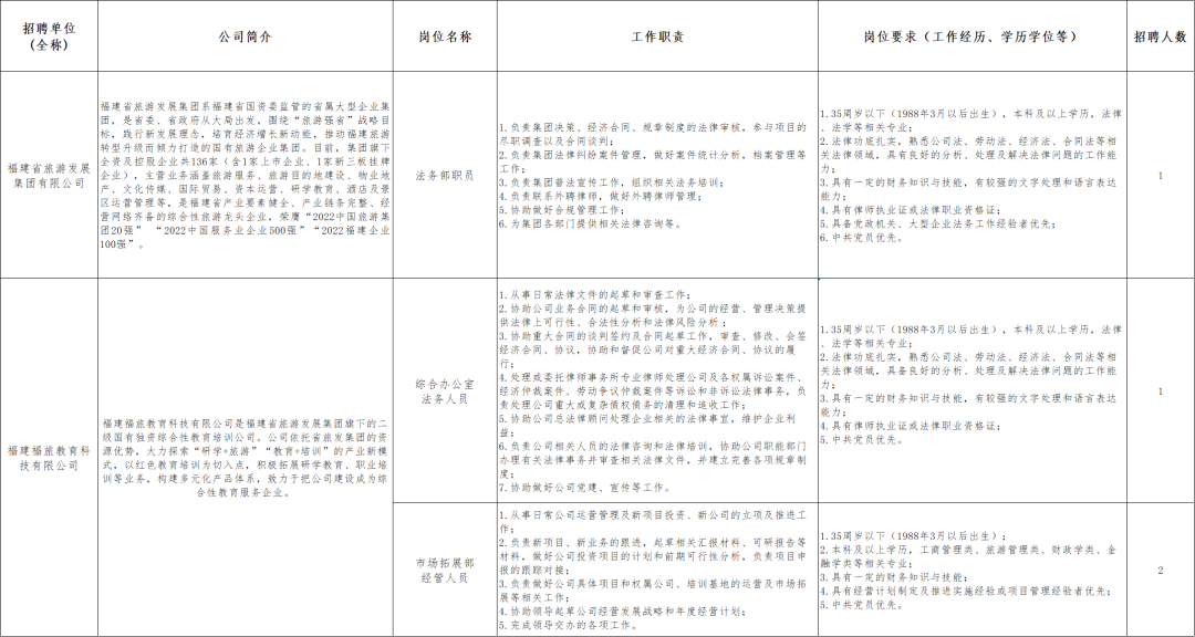?招聘单位:福建省旅游发展集团(系福建省国资委监管的省属大型企业集团)