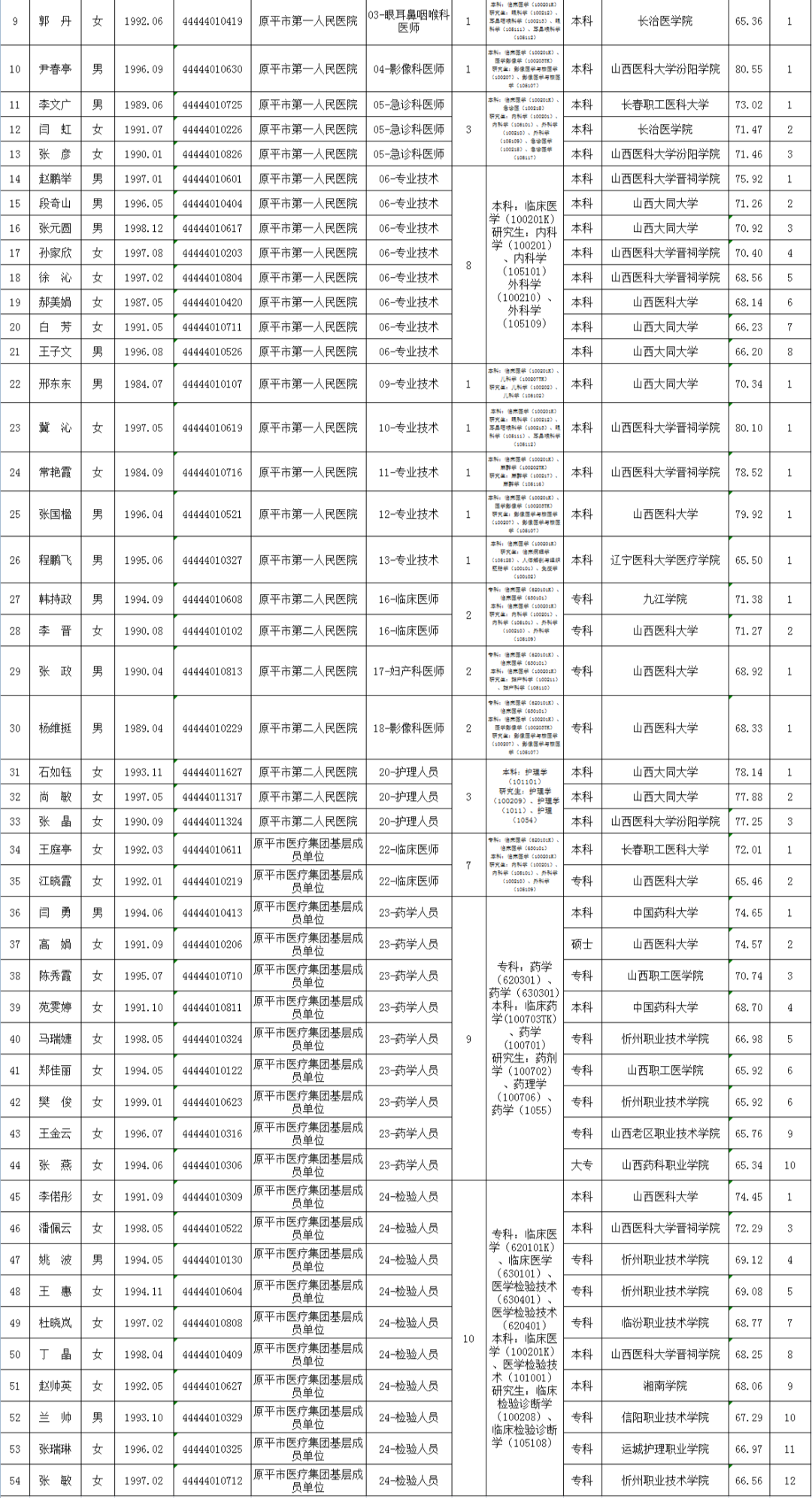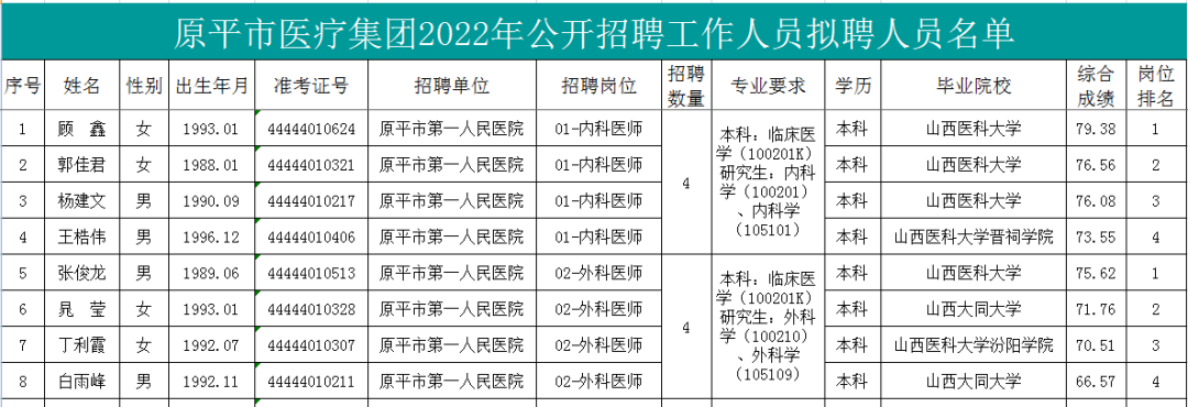 附件:原平市医疗集团2022年公开招聘工作人员拟聘人员名单