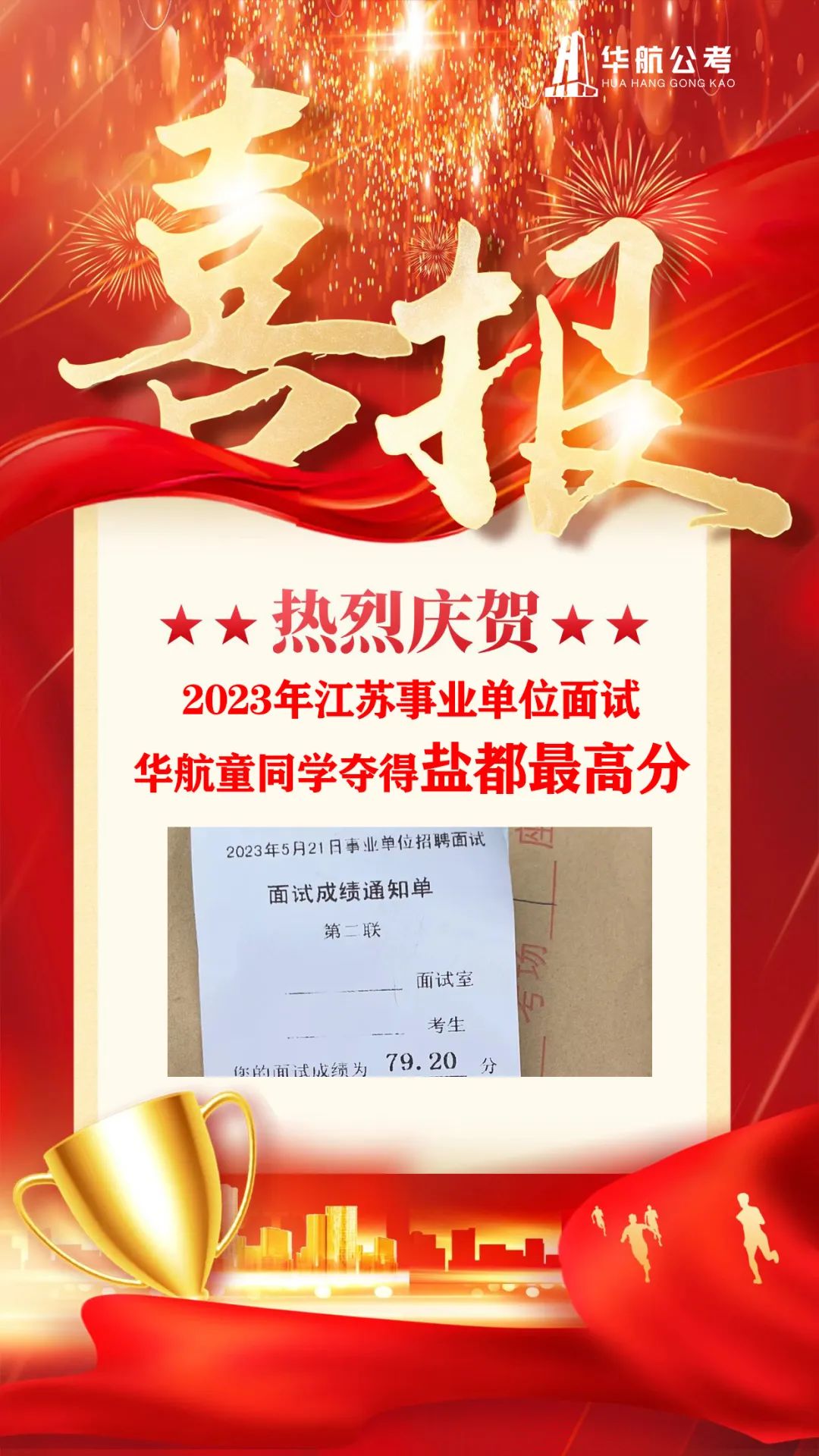 华航童同学,夺得2023年江苏事业单位盐都区面试最高分