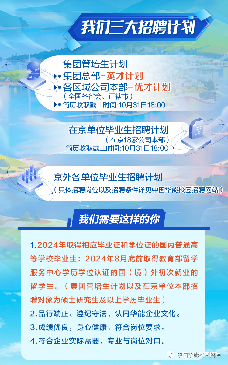 信息来源:公众号:中国华能校园招聘中国华能2024校园招聘正式启动