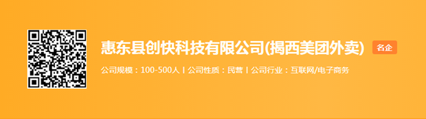 招聘企业:惠东县创快科技有限公司(揭西美团外卖)