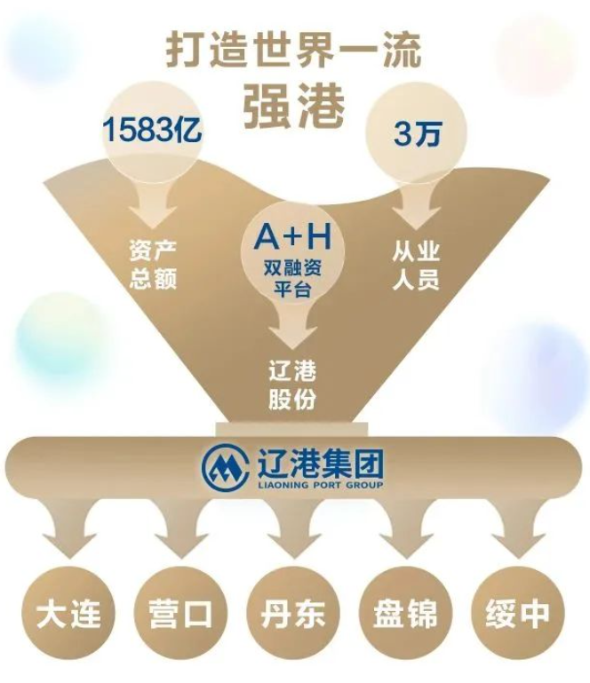 辽宁港口集团有限公司于2019年1月4日在大连成立,是招商局集团贯彻党中央、国务院部署,落实供给侧结构性改革和推进国企改革的重大战略举措。作为招商局集团港口板块的北方母港,辽港集团资产总额1583亿元,从业人员近3万人,拥有辽港股份A+H双融资平台。