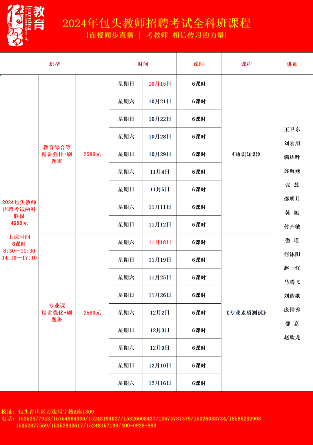 传习教育2024年包头教师招考全班型课程,覆盖包头各区教招考察内容,助力考生通关上岸!