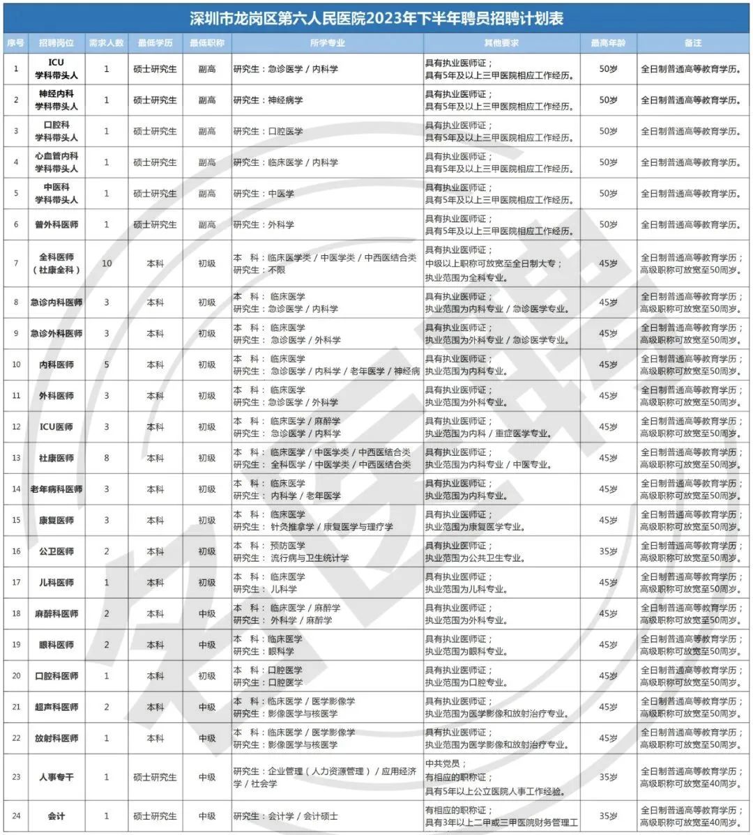>招72人 | 深圳市龙岗区第六人民医院招聘专业技术人员公告