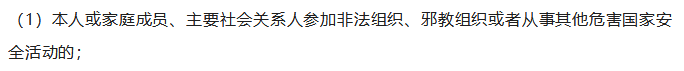 (2)本人家庭成员或主要社会关系人正在服刑或正在接受调查的;