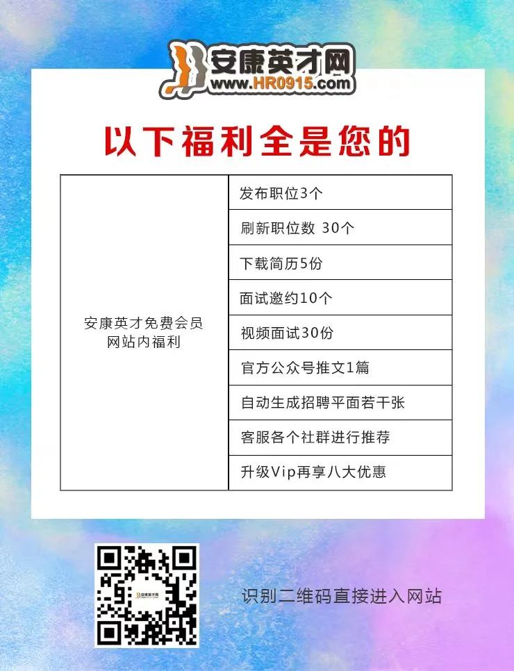 1、识别二维码,关注安康英才网公众号,点击找工作进入招聘界面