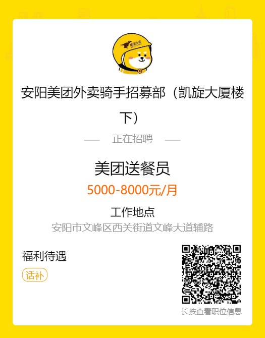 安阳美团外卖骑手招募部(凯旋大厦楼下)