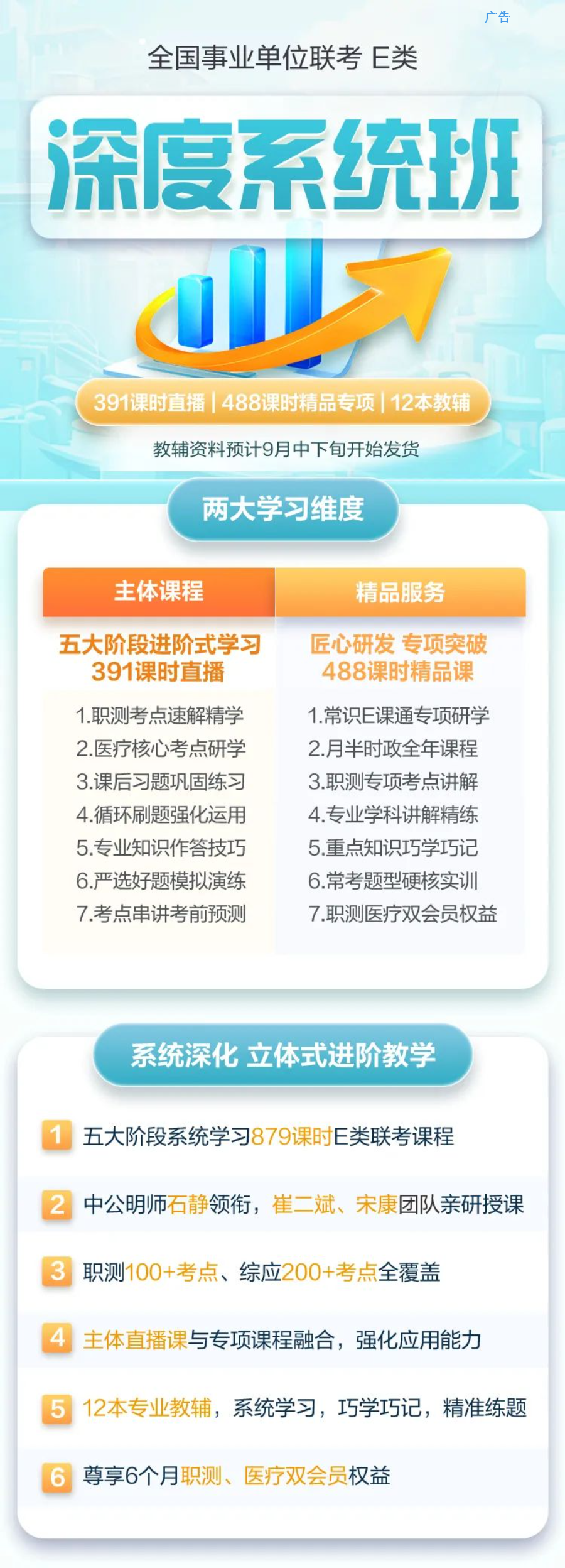 | 24年E类联考深度系统班 | 今日医疗招聘公告 | 七大专业易错习题集 |