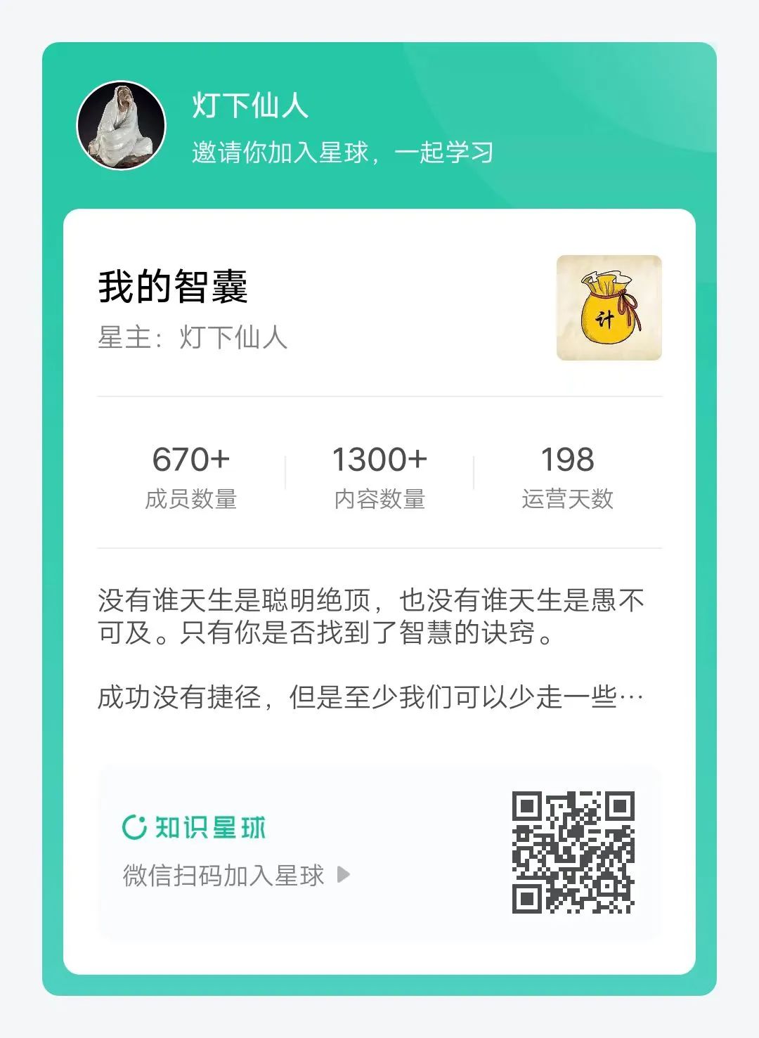 《职场合集》目前我已更新到第六部,未来还有四部要在星球更新,知识星球是阅读此作品的唯一渠道,纸里包不住火,越来越多的职场人加入本人知识星球,据昨日统计目前已有670人同时在线阅读,国庆假期还有两天就结束了,为限制人数不断增加,我们决定将星球价格做出进一步调整,由现在:588元,调整至:888元,还没有加入的老朋友可以现在扫描下方二维码加入,仍按588元计算,时间有限。