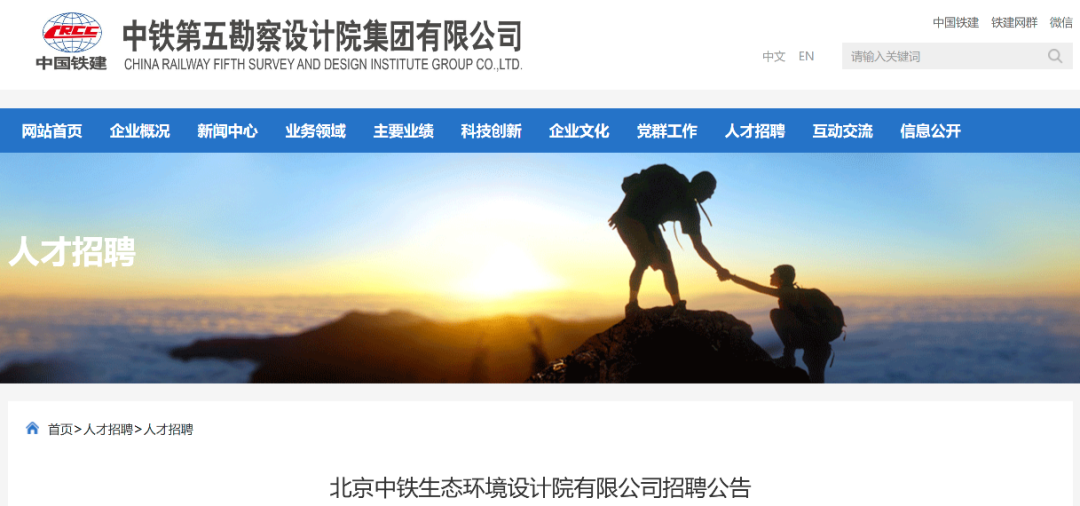 中铁第五勘察设计院集团有限公司前身是中国人民解放军铁道兵科学技术研究处(院),始建于1958年10月,现为国资委管理央企、世界500强中国铁建股份有限公司的全资子公司,拥有工程设计综合甲级、工程勘察综合甲级、城乡规划编制甲级等各类甲级资质资信证书20余项。是全国勘察设计百强企业、国家认定企业技术中心、全国文明单位、中央企业先进集体和北京市首批高新技术企业、ENR/《建筑时报》“中国工程设计企业60强”企业。