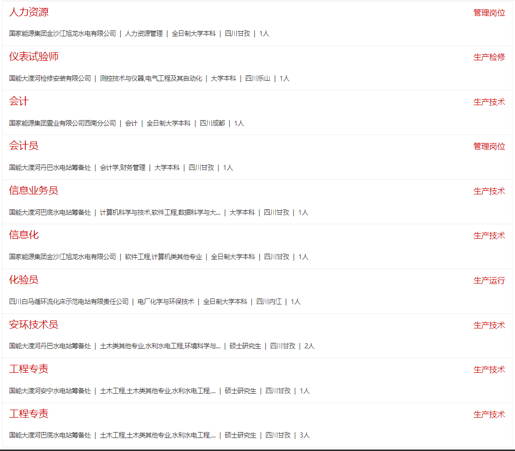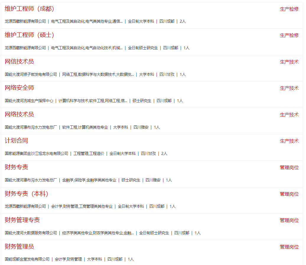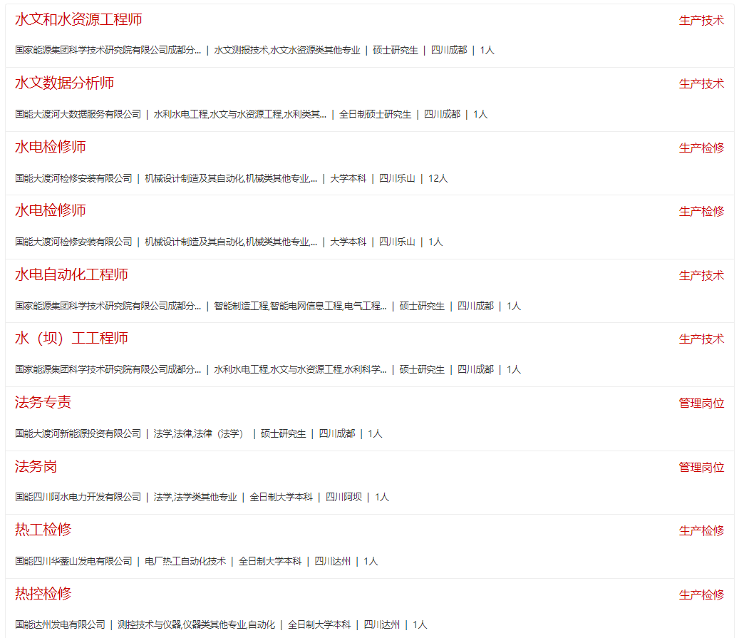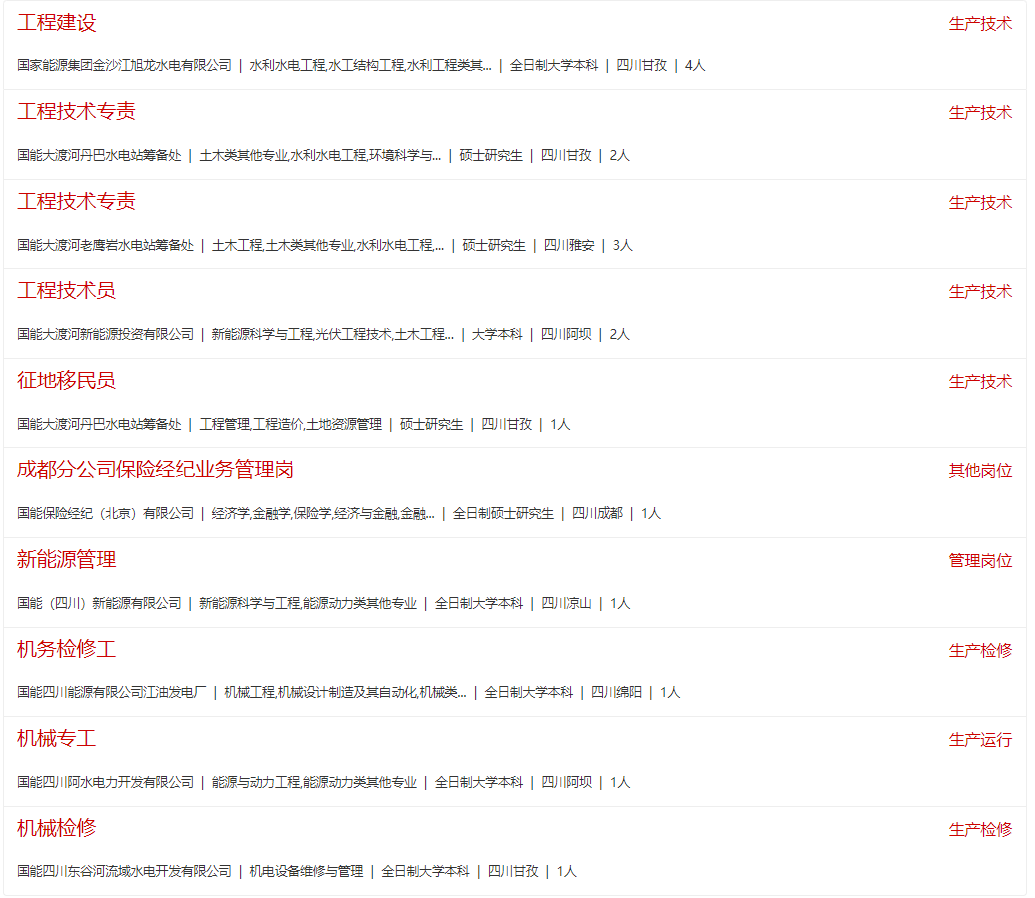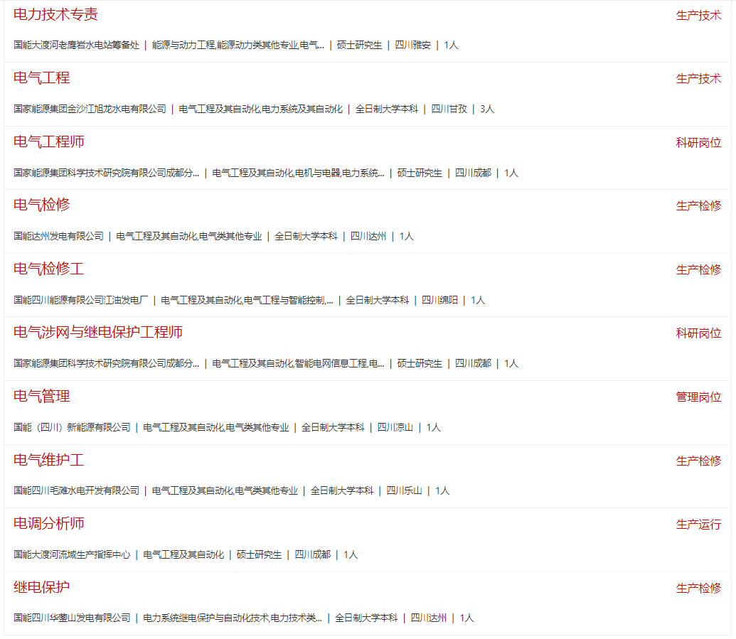 面向国家能源集团所属72家子分公司的生产、科研、管理岗位,涉及电气工程、机械工程、材料科学与工程、动力工程及工程热物理、化学、采矿工程、控制科学与工程、计算机科学与技术、交通运输工程、法学、经济学、管理学等学科。计划招录近6000人点击获取职位表。