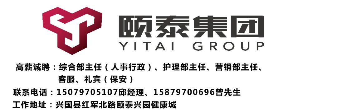 颐泰兴园健康城诚聘护理员:5名薪资:3000-6000元/月,包吃住工作时间: 两班倒 月休4天岗位要求:45-60岁,男女不限,具有初中及以上学历,热爱康养事业,有爱心、孝心、良好的沟通能力和亲和力,良好的服务意识。面试上班地址:红军北路颐泰•兴园健康城