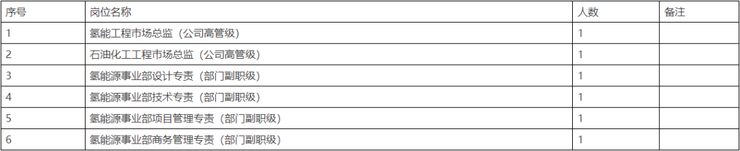 现因工作需要,拟成立氢能源事业部,现面向公司内外以公开遴选方式招聘相关岗位成熟人才,有关事项公告如下: