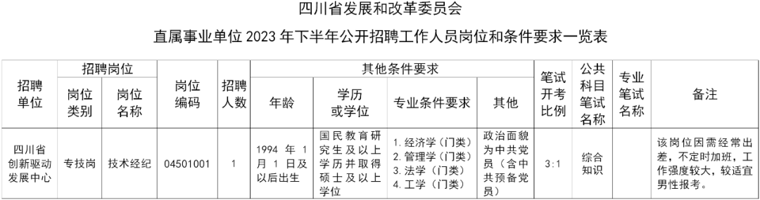 四川省发展和改革委员会关于直属事业单位2023年下半年公开招聘工作人员公告