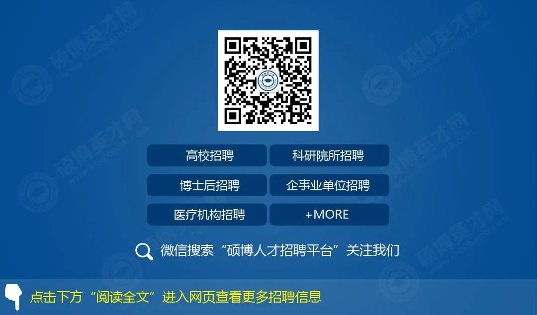 如有变更请以原发布者为准。(电话联系时请说明是在硕博英才网看到的招聘信息,邮件申请时请在标题结尾加上信息来源于“硕博英才网”)。本文内容及未标注图片来自网络,版权归原作者所有,仅供分享之用,不代表本公众号观点。如转载稿涉及版权等问题,请留言联系我们删除。
