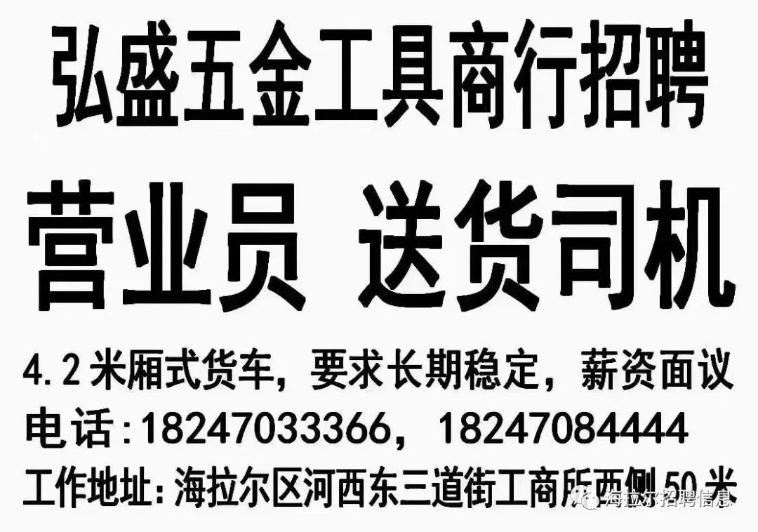 弘盛五金工具商行招聘: