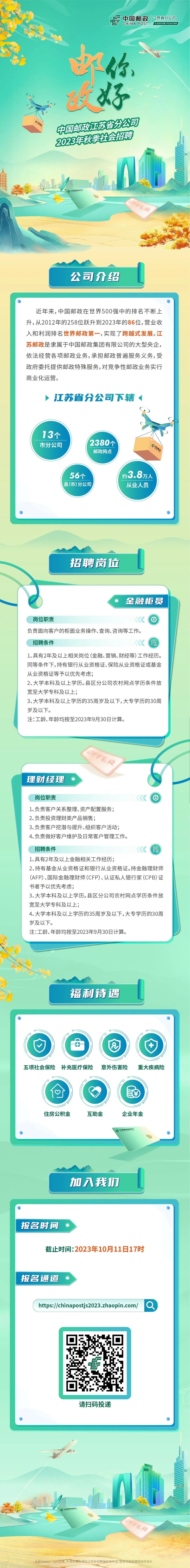 2.中国邮政集团常州市分公司2023年秋季社会招聘