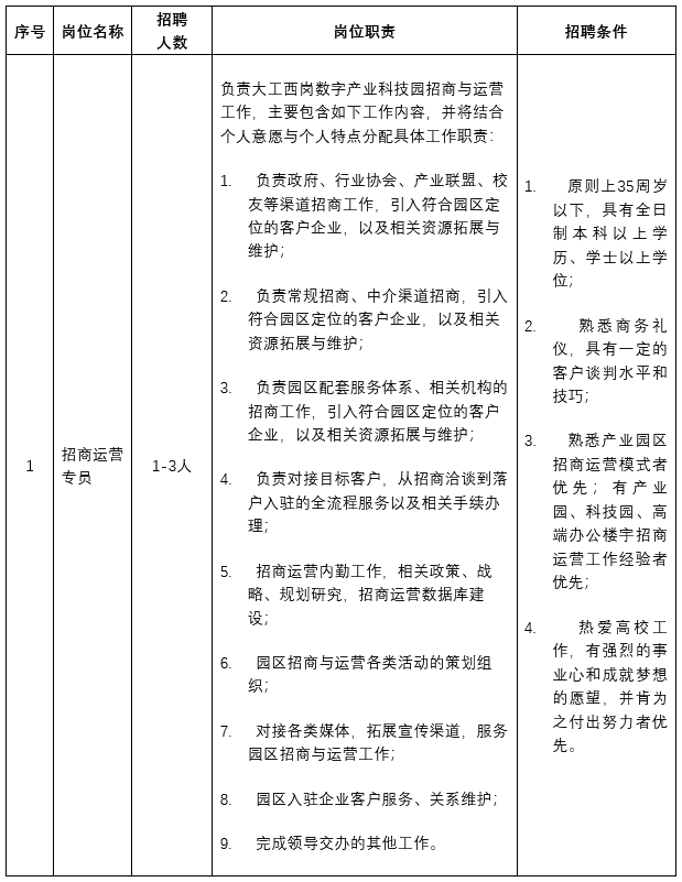 为深入贯彻党的二十大加快建设网络强国、数字强国的精神,全面服务东北振兴,大连理工大学市内校区将重点打造大工西岗数字产业科技园。为推动园区招商与运营工作开展,办公室现诚聘英才,共筑园区美好未来。