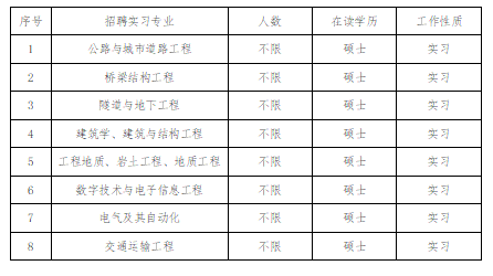 湖南省高速公路集团有限公司(以下简称“集团公司”)是经省人民政府批准设立的功能类国有控股公司,注册资本300亿元,拥有全资、控股二级公司40多家。湖南高速设计咨询研究院有限公司(以下简称“设计院”)是集团公司下属二级全资子公司,注册资金600万元,具备公路行业(公路、特长隧道)专业甲级资质、市政行业(道路工程、桥梁工程)甲级资质、工程勘察专业类(岩土工程、工程测量)甲级资质、工程咨询(公路)甲级资信。公司主要业务为各级公路工程的勘察设计、市政道路与桥梁勘察设计、工程可行性研究、技术咨询。因公司业务发展需要,竭诚希望更多英才加盟,共创美好未来!丰富、精彩的实习安排,带你深度走进湖南高速设计咨询研究院有限公司,打开职场大门,体验湖南高速设计咨询研究院有限公司的企业文化、提升职场工作技能、与职场前辈面对面交流、体验团队合作之美、感受魅力星城,提前锁定湖南高速设计咨询研究院有限公司年度秋招Offer。2.投递方式:采用网上投递方式,有意向应聘实习的人员请登录湖南省高速公路集团有限公司官网,查阅招聘信息,进行网上投递。3.投递要求:下载并准确、完整、规范填写《湖南高速设计咨询研究院有限公司公开招聘实习人员信息登记表》,将应聘实习人员信息表以“姓名+实习专业+长沙市人才网公众号”格式命名,并作为邮件主题,发送到邮箱(15301303@qq.com)。应聘实习人员应对所提供材料的真实性负责,凡提供虚假材料或隐瞒有关招聘禁止情形的,一经查实,将予以清退。联系人及联系方式:龙先生(15116252328)、陈女士(18908491122)八、其他本招聘公告未尽事宜由湖南高速设计咨询研究院有限公司人力资源部负责解释。注:应聘时请说明来自“长沙市人才网”公众号
