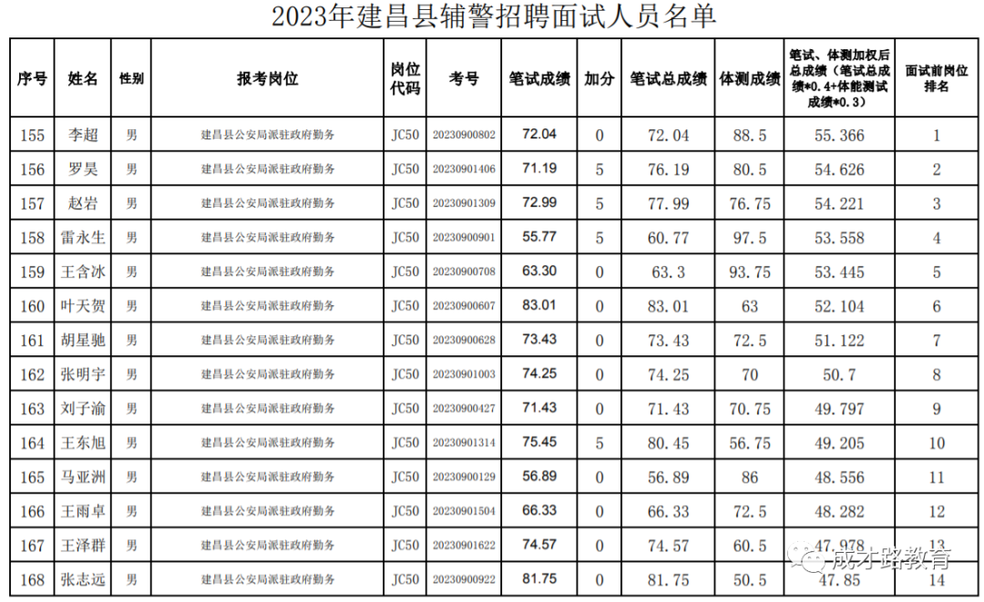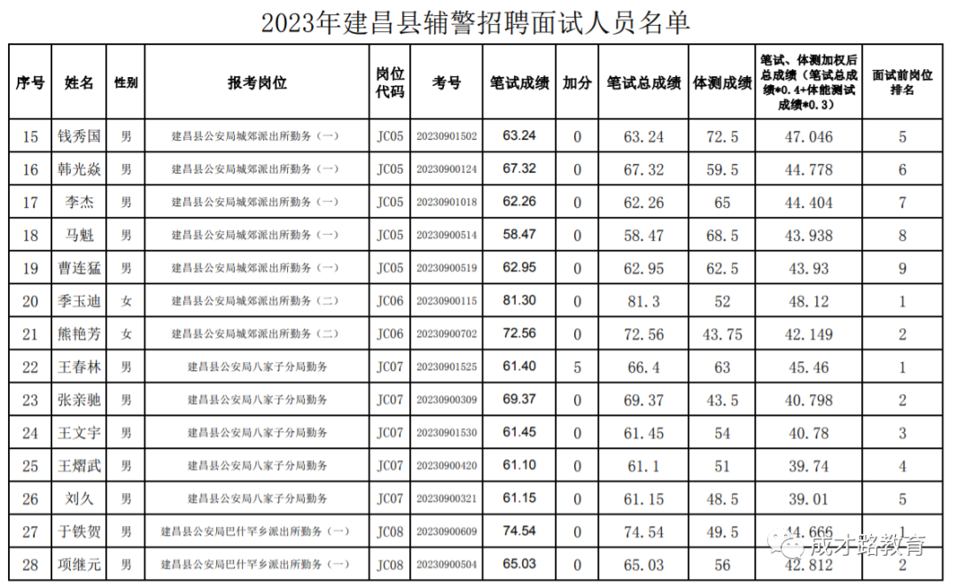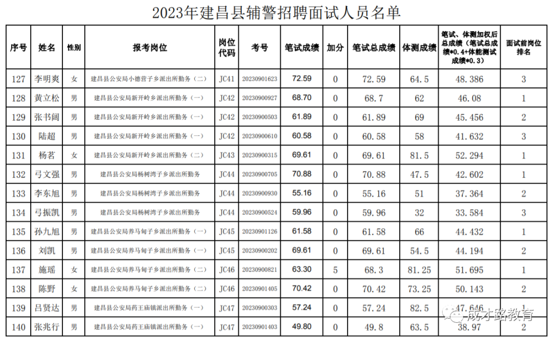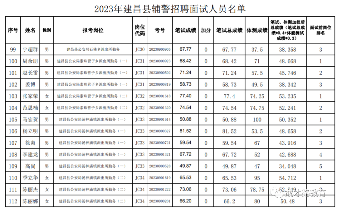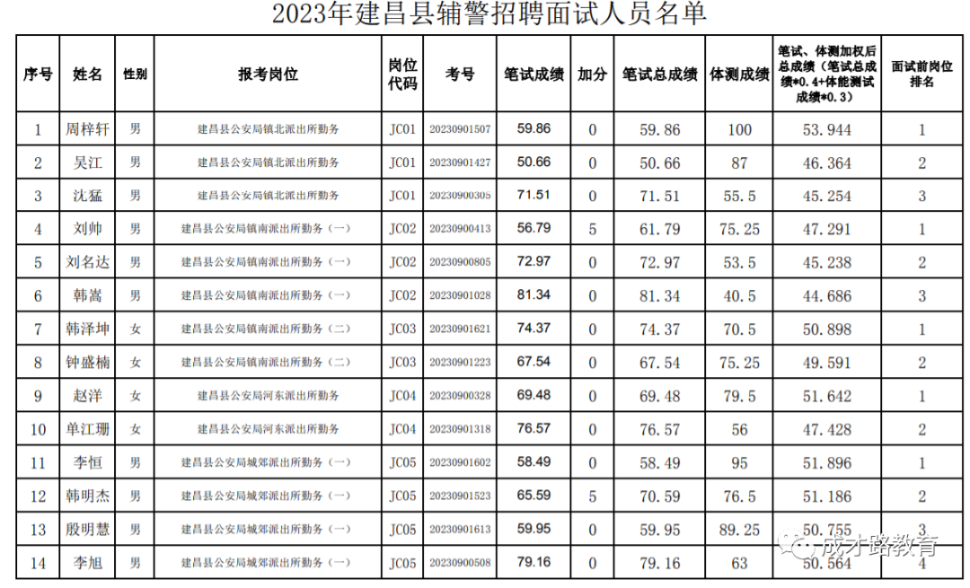 2023年建昌县公安局辅警招聘笔试、体能测试工作已经结束,根据《公告》要求,即将开展面试工作,现将面试具体安排和有关事项公告如下: