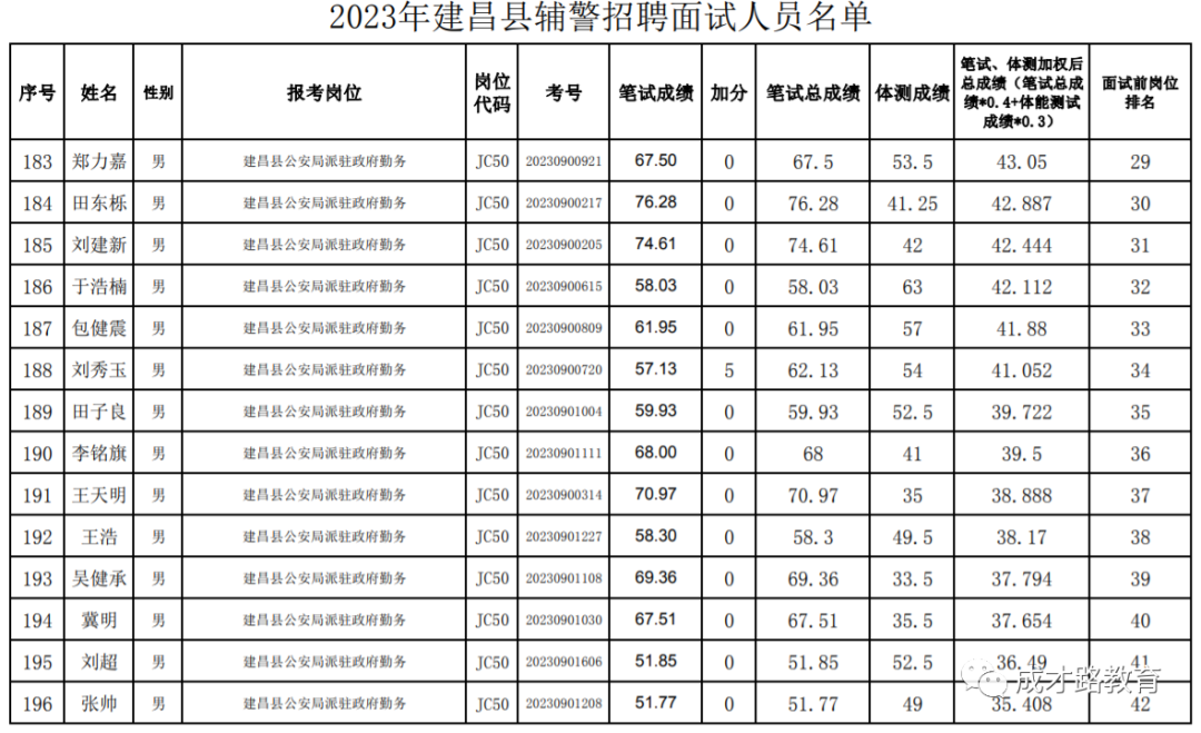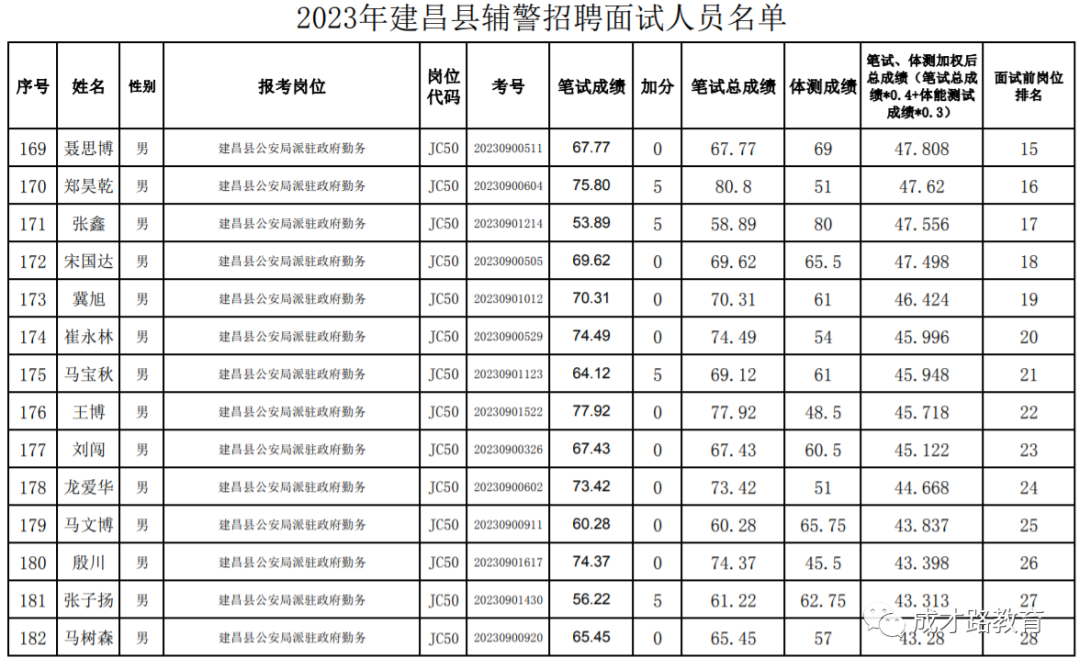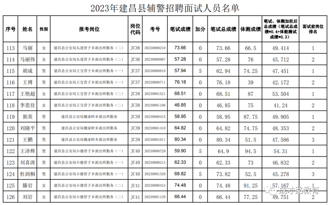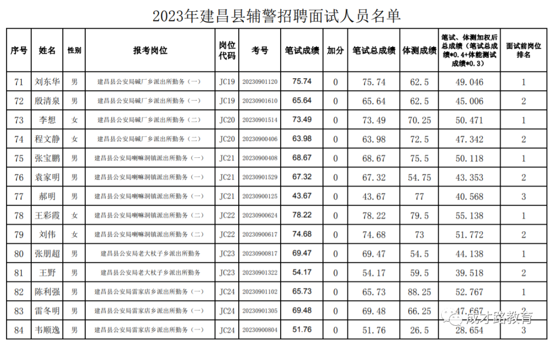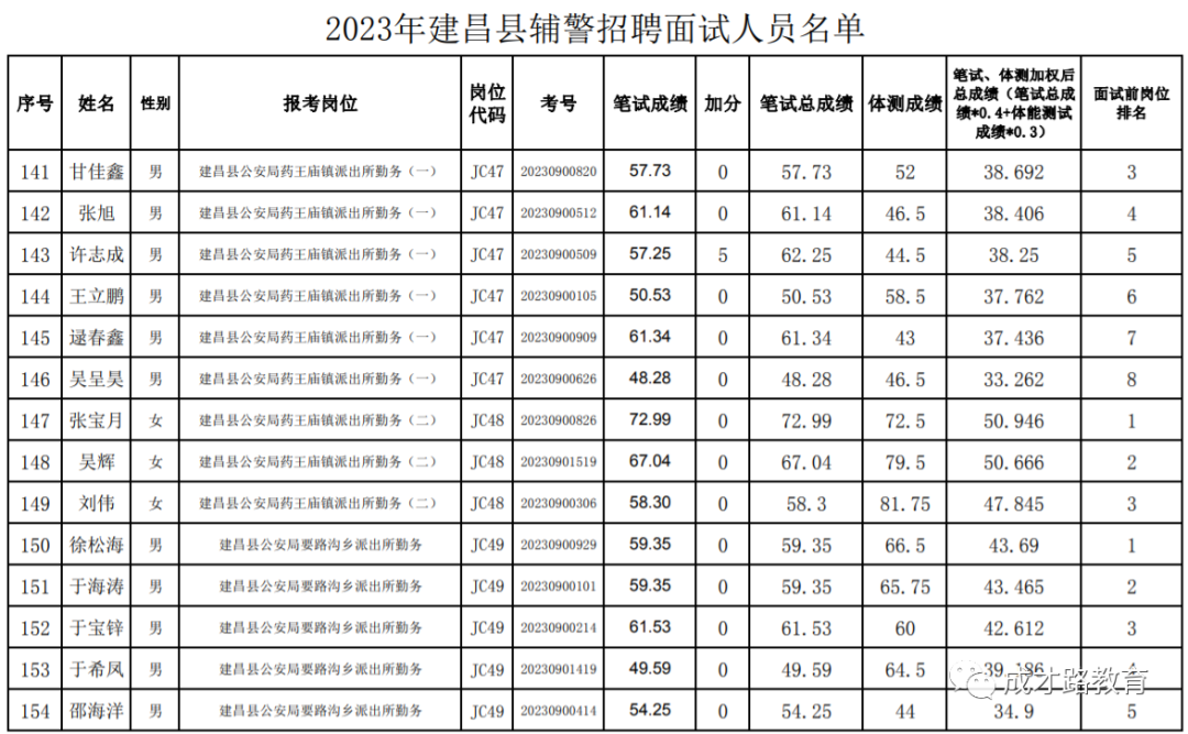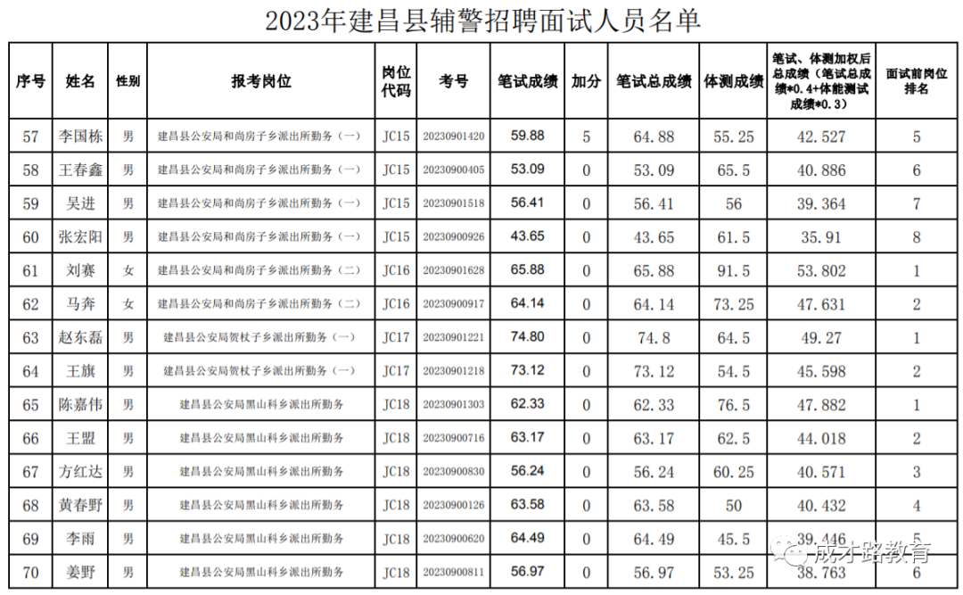 2023年建昌县公安局辅警招聘笔试、体能测试工作已经结束,根据《公告》要求,即将开展面试工作,现将面试具体安排和有关事项公告如下: