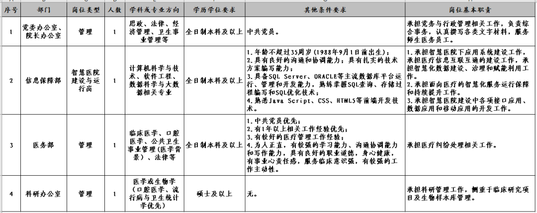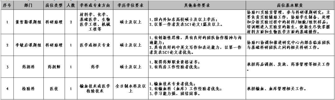 (二)身心健康,善于沟通,学习能力强,具有较强的团队协作意识,服从科室各项工作安排。