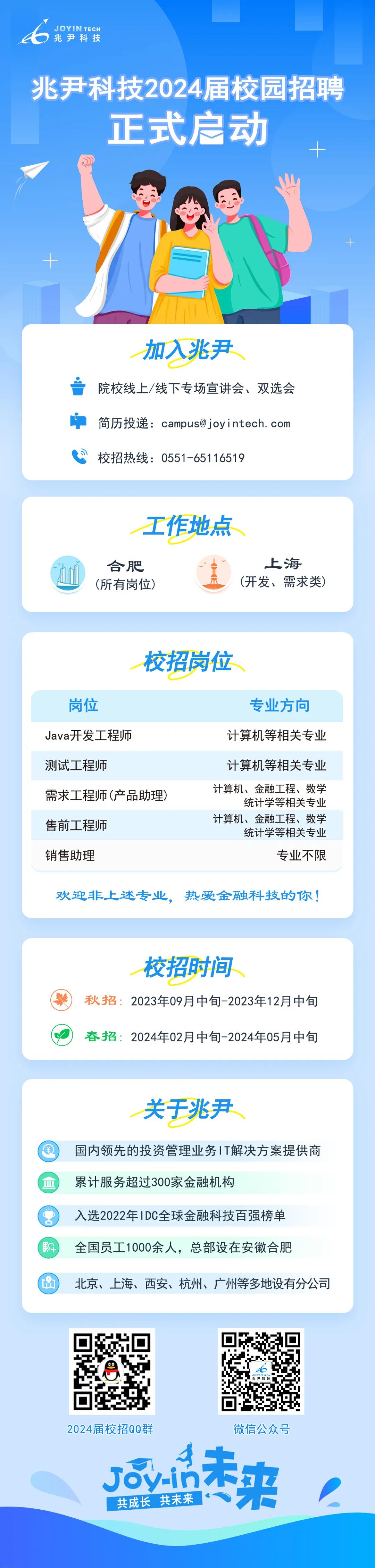安徽实习校招君,是专注于安徽大学生的求职成长平台,目前已覆盖省内多数高校,精准链接安徽名企,是众多安徽企业的实习校招招聘平台。为求职者提供海量校招内推、实习资讯、求职干货、简历辅导等 。助力大学生斩获高含金量的名企offer。安徽实习君非常欢迎品牌的推广以及战略合作,请添加微信:zwsbest2021
