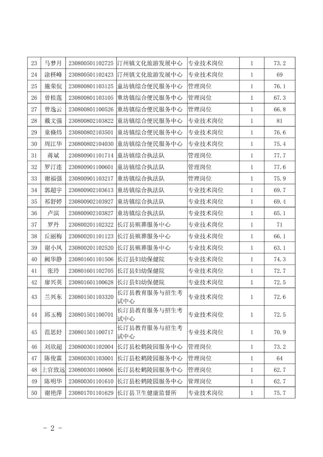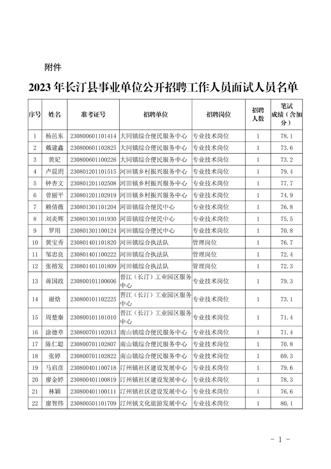 2023年长汀县事业单位公开招聘工作人员面试人员名单