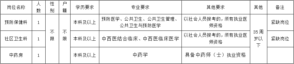备注:具有中级职称或硕士研究生学历学位,年龄可放宽至40周岁。