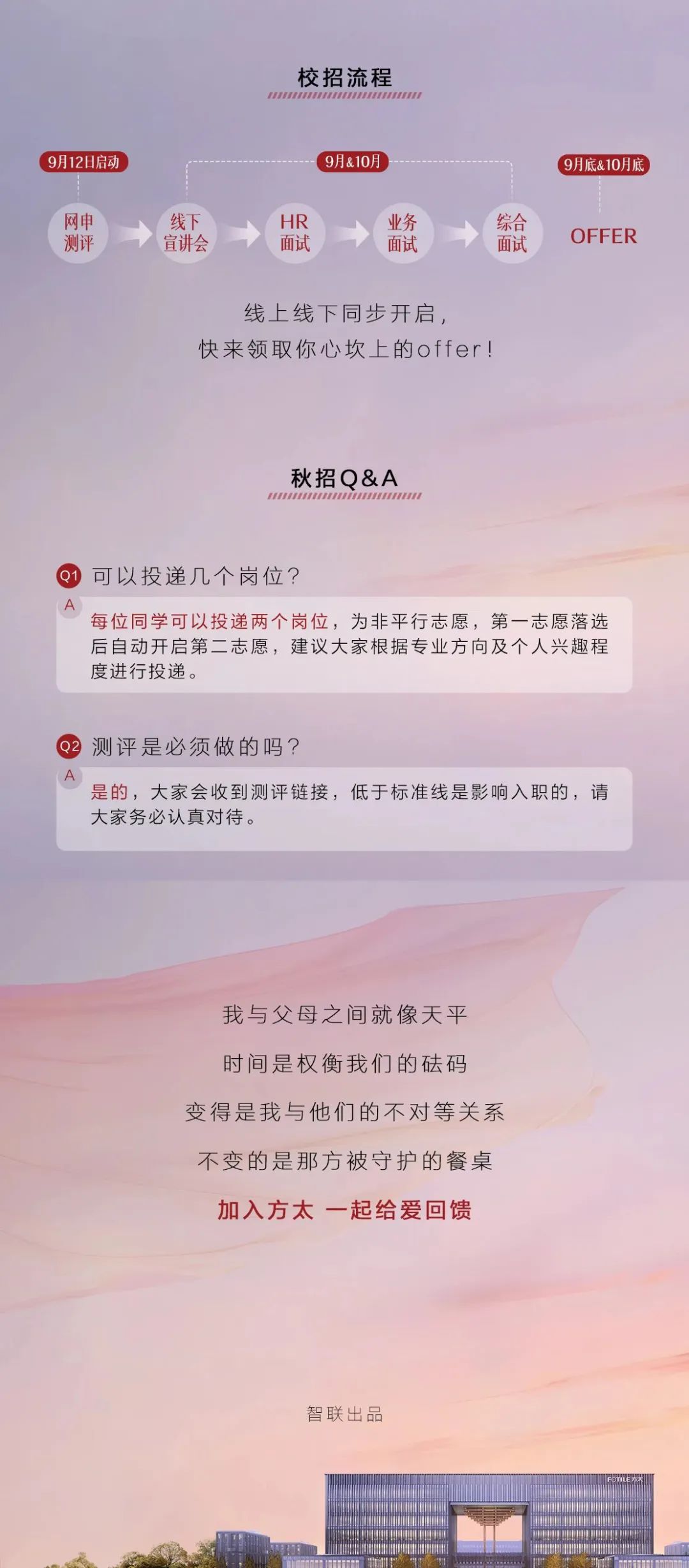 电脑端投递简历:请将链接【http://hturl.cc/iyq0a】复制到电脑端打开并投递移动端投递简历:点击下方小程序投递简历内推获取扫描下方海报二维码进群领取【方太集团】内推码内推码使用步骤:1. 将链接(http://hturl.cc/iyq0a)复制到电脑端用浏览器打开,选择心仪岗位,确认投递。2.确认投递后会跳转到官网,再次选择心仪岗位投递,需完善在线简历,并根据提示填写内推码,投递成功即已参与内推!