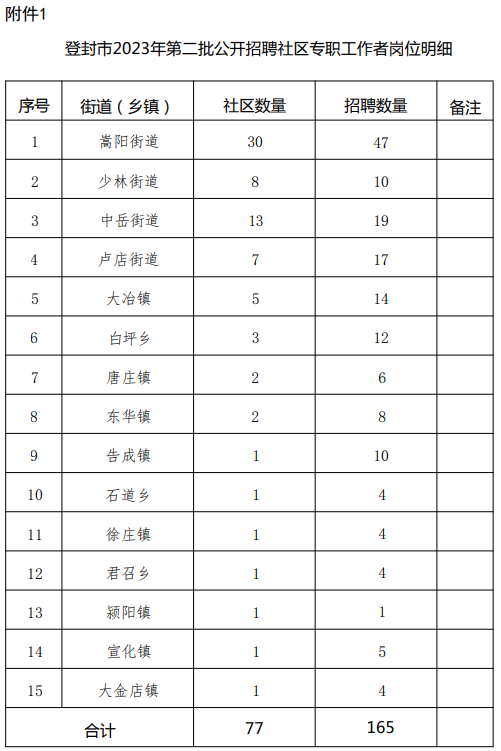 附件:1.登封市2023年第二批公开招聘社区专职工作者岗位明细