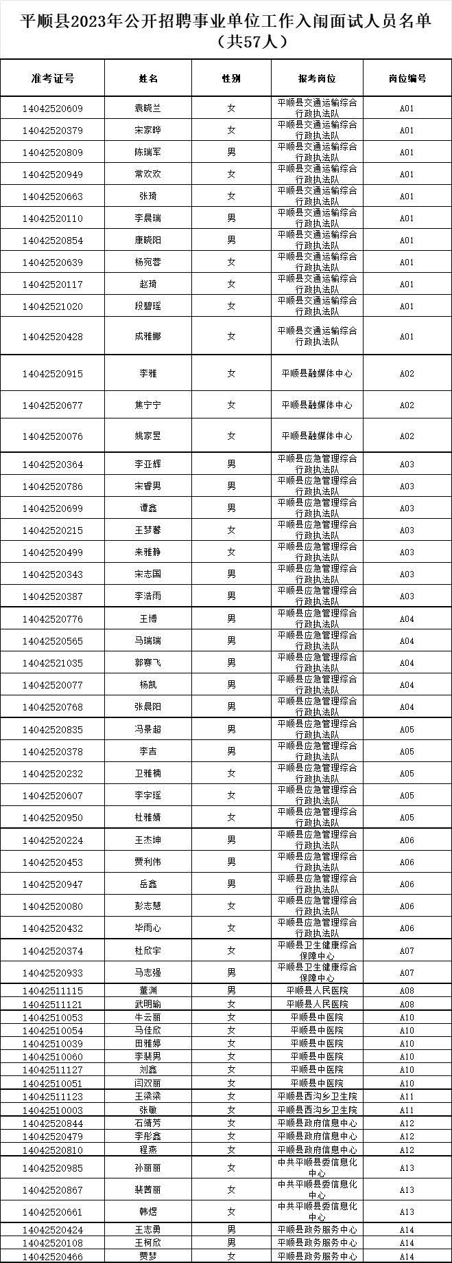 附件:平顺县2023年公开招聘事业单位工作入闱面试人员名单.xls