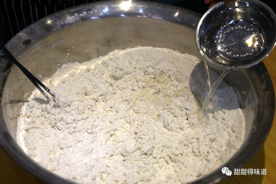 1、第一步我们先来处理面团,把面粉用温水搅拌好,之后揉成面团,揉好后放在一旁,下面我们重点来处理饺子馅。