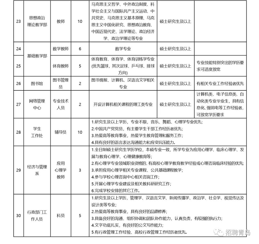 2.教学岗和其他岗位薪酬按照学校薪酬福利管理办法执行,按国家规定缴纳五险一金,享受带薪寒暑假和国家法定假期,提供往返烟台和青岛市区的上下班班车;单身教职工可享受校内单身教职工公寓。