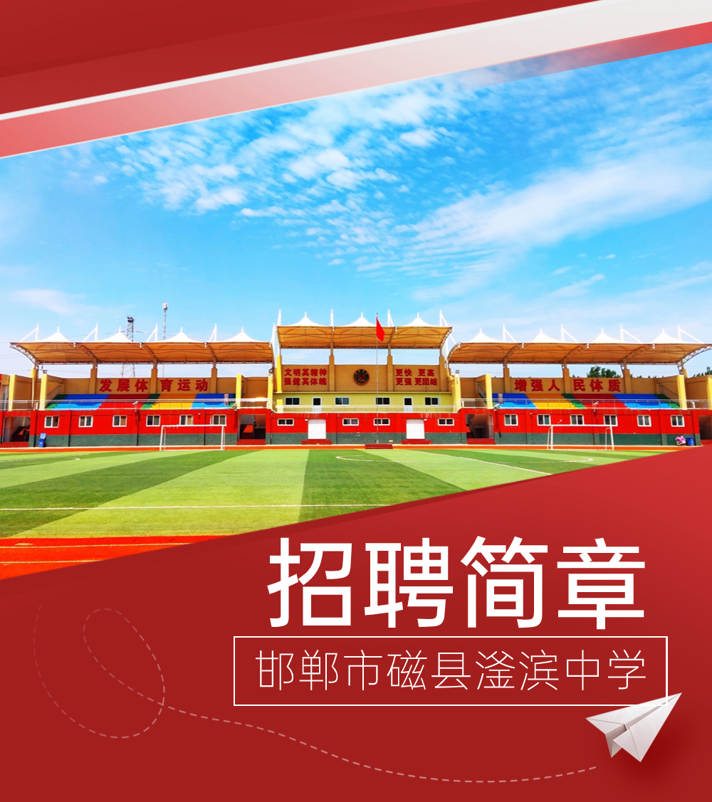 磁县滏滨中学始建于2000年,建筑面积6万余平方米,在校生5000余人。学校位于磁县城西3公里,毗邻风景旖旎的溢泉湖风景区,环境优雅,人文气息浓厚。学校特聘全国知名教育专家李富兴校长为我校教育顾问。学校教学成绩优异,赢得社会各界认可。磁县滏滨中学现面向全国诚邀英才,广阔的舞台已经搭建,发展的机遇就在眼前,欢迎有志、有才、有爱的你加入滏滨大家庭,愿我校成为你实现梦想的摇篮!为优化教师结构,做好人力资源储备,现面向社会公开选聘各学科优秀教师,现将相关招聘事项公告如下: