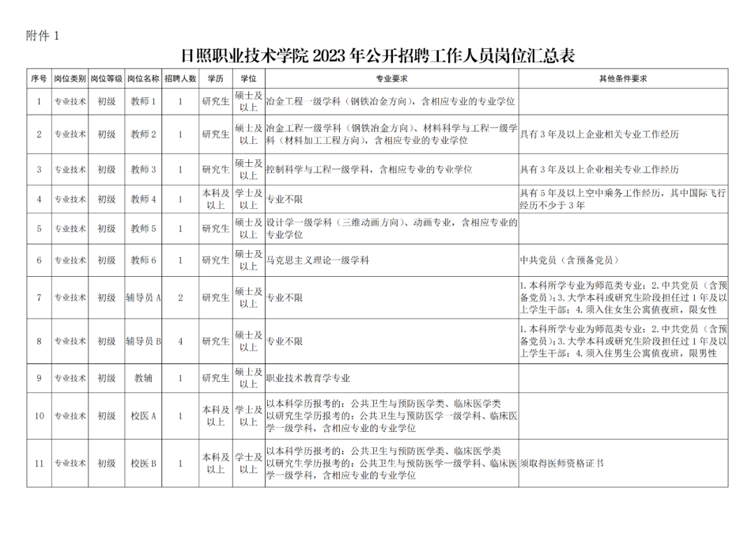 具体招聘岗位、招聘人数及条件要求见附件1。